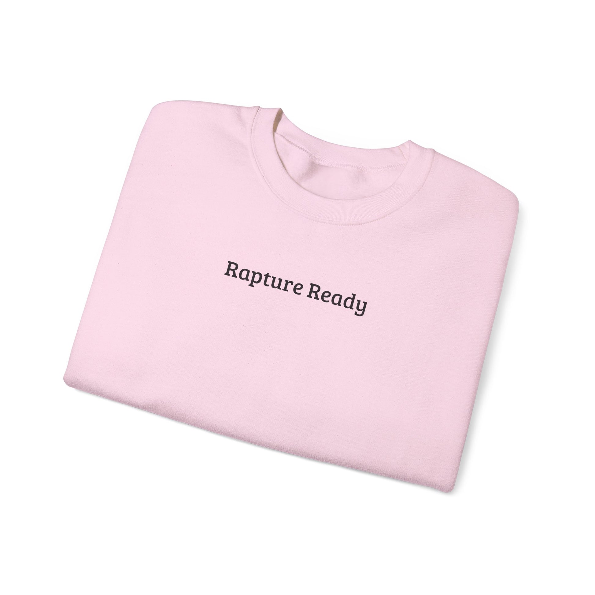 Crewneck Sweatshirt — "Rapture Ready" Minimalist Religious Graphic