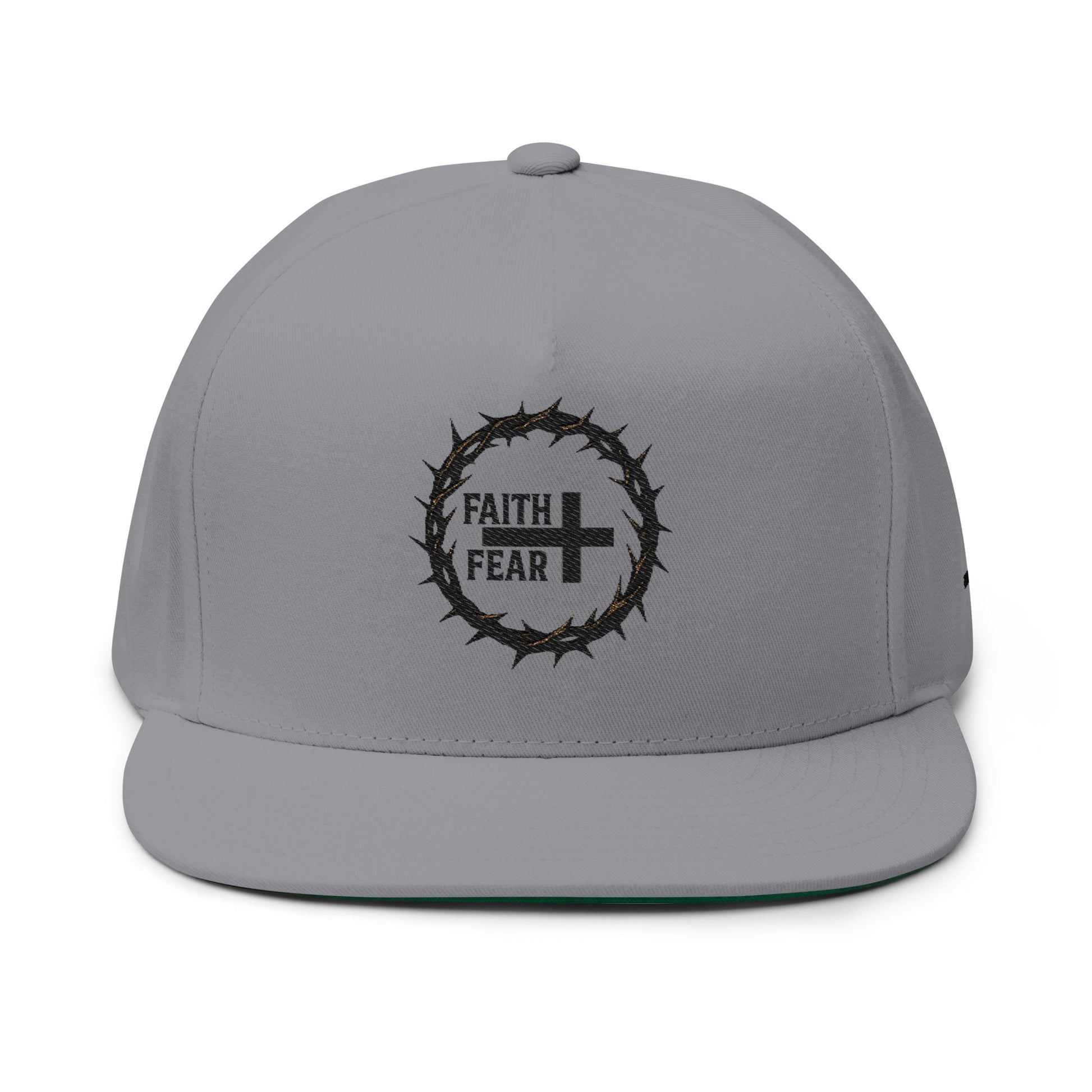 Embroidered Faith Over Fear Flat Bill Cap — Crown of Thorns Cross Snapback