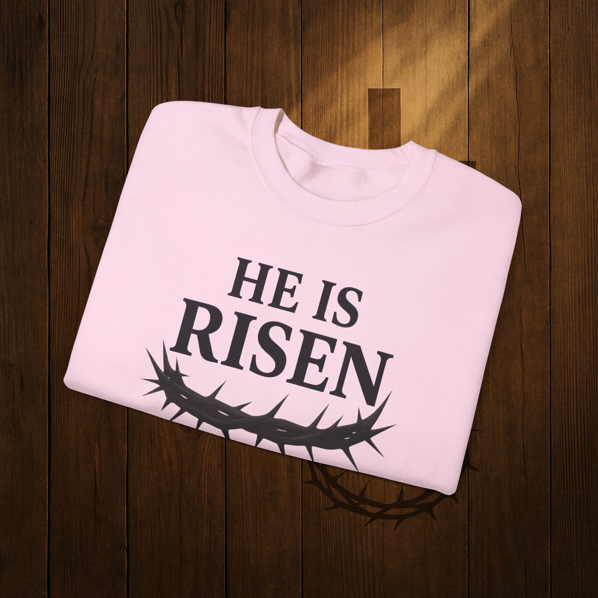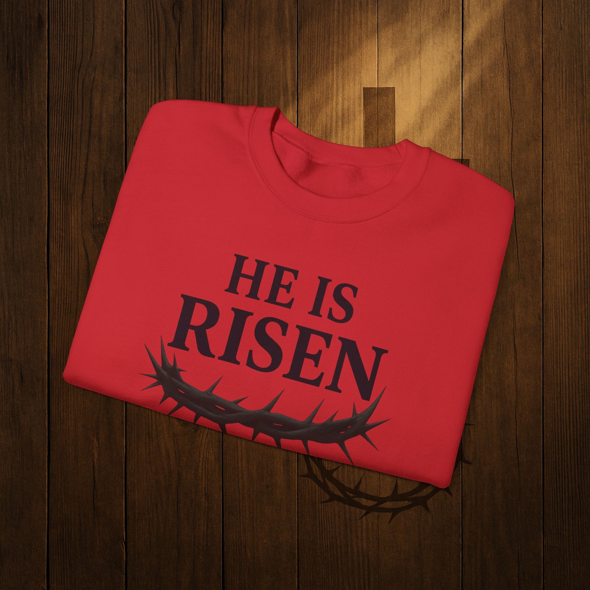 He Is Risen Sweatshirt — Christian Easter Crewneck with Crown of Thorns